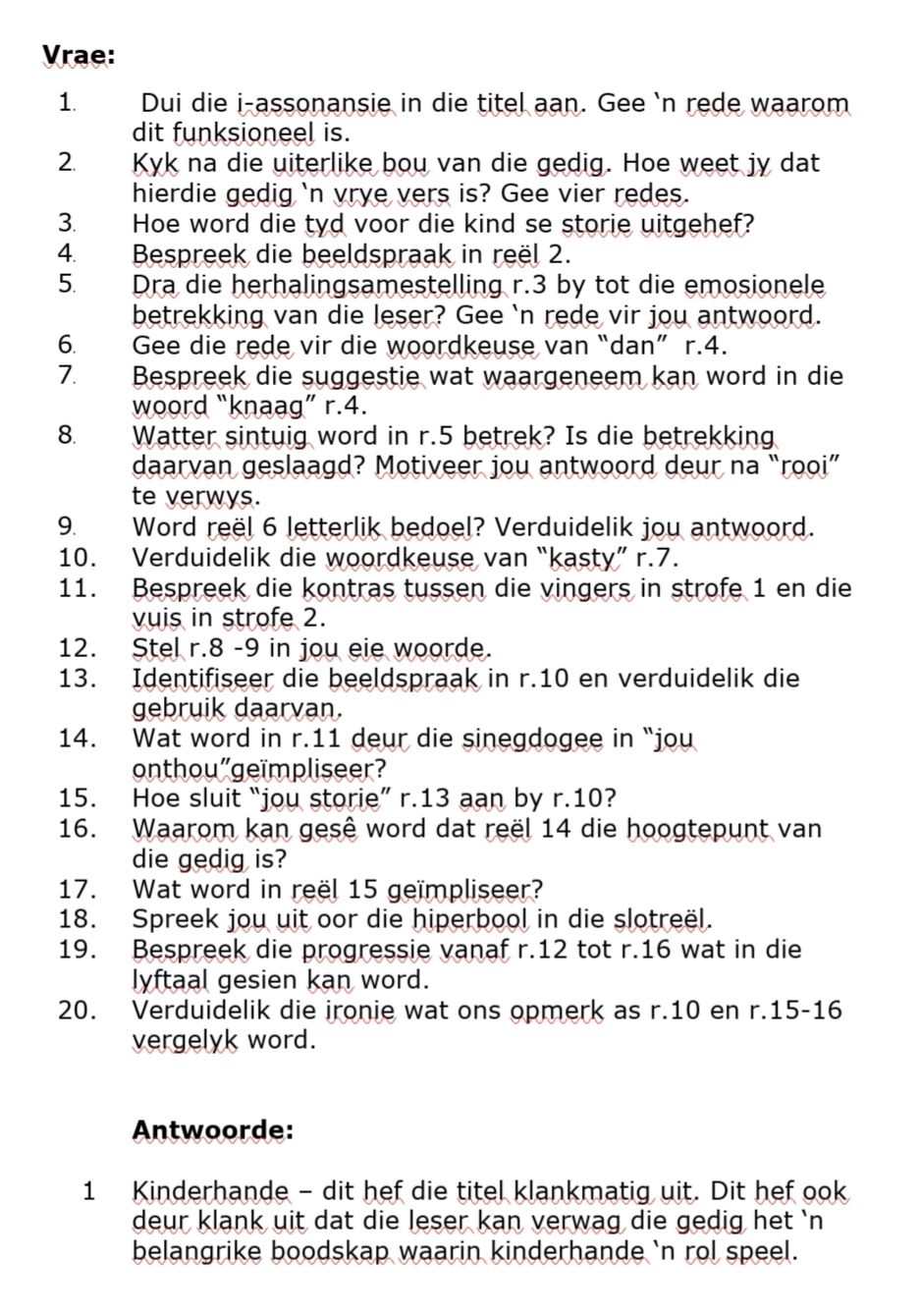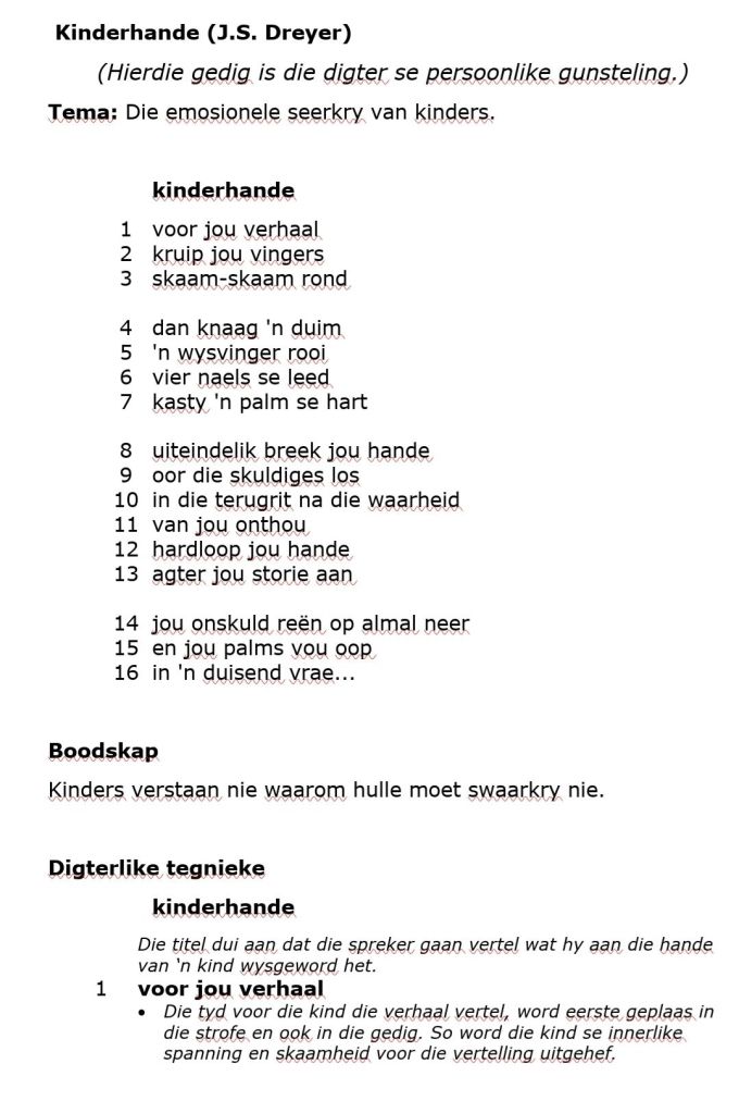 Om jou nuuskierig te maak vir hierdie groot hulp plaas ek ‘n gedig met notas, vrae en antwoorde uit die handboek. Gebruik dit na hartelus! Hoop dit maak jou las iewers bietjie ligter!